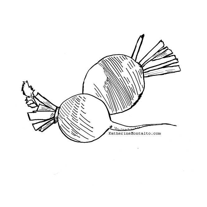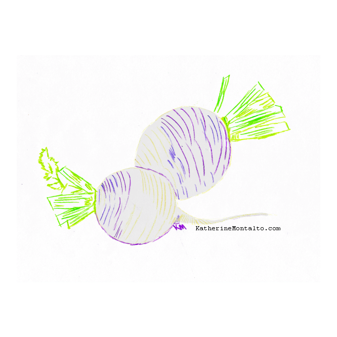 color pencil illustration of two turnipsbrush pen illustration of two turnips